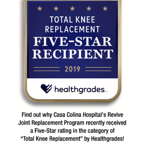 The Revive Joint Replacement Program at The Orthopedic & Robotics Center at Casa Colina gets patients moving with innovative techniques that minimize pain, accelerate recovery and improve outcomes. Our board-certified surgeons use state-of-the-art technology and the latest research-based treatment methods to perform joint replacement surgery which involves removing an arthritic or damaged joint and the surrounding worn cartilage that has worn over time. They replace it with a prosthesis or artificial joint, which functions much like a normal, healthy joint.